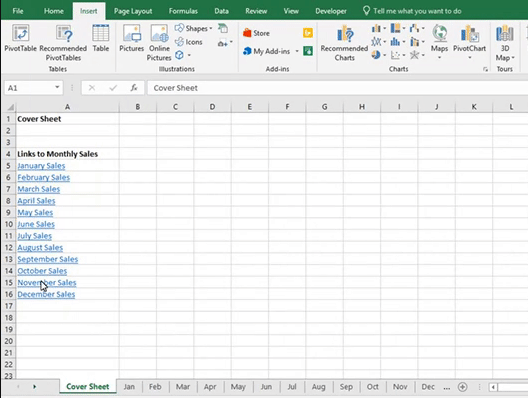 A hyperlink can be used to quickly navigate to another sheet within your workbook. This is useful if you have a lot of sheets, as it will save you from having to click through the sheets trying to find the one you want.