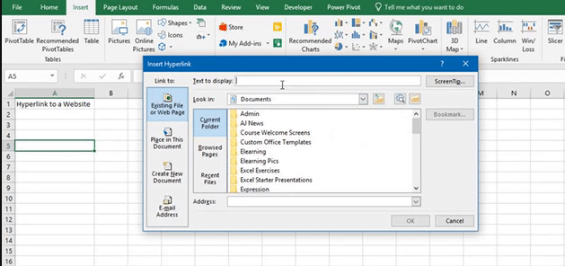 1. Select the cell you want the link to appear in