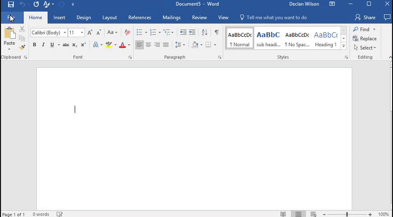 1. Press File then select new